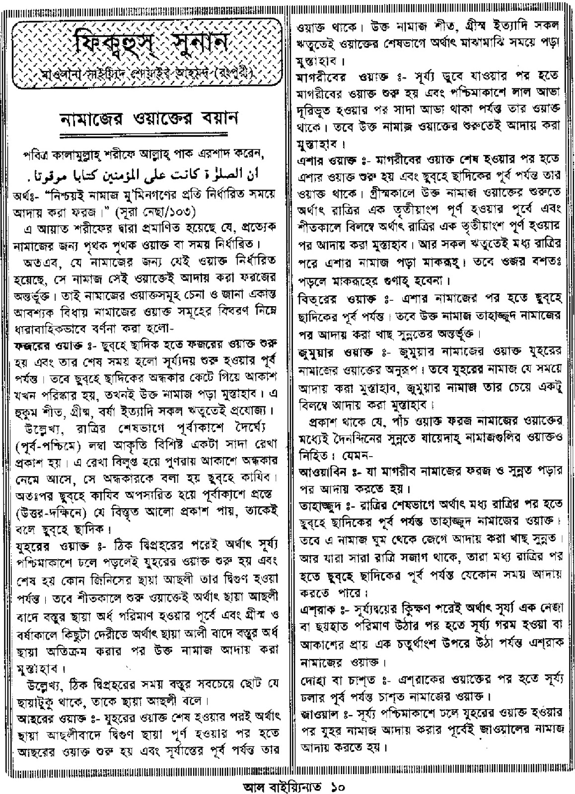 [মাসিক আল-বাইয়্যিনাত শরীফ ৩৬ তম সংখ্যা (আগস্ট ১৯৯৬ ঈসায়ী) থেকে সংগৃহীত ]